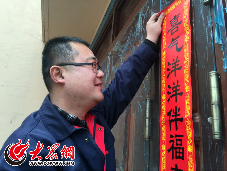 過年了,包海濤在換熱站門上貼春聯