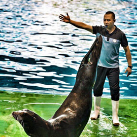 歡樂的舞曲緩緩響起,一個眼神,一個手勢,一次愛撫,馴獸師和海豚仿佛有著無言的默契,將人豚共舞的場景演繹得淋漓盡致,贏得觀眾陣陣喝彩和興奮的掌聲。青島,一個充滿溫情和令人無比向往的海濱城市,每年都會有許多青年才俊來這里尋夢。青島海昌極地海洋公園的馴... [詳細]
