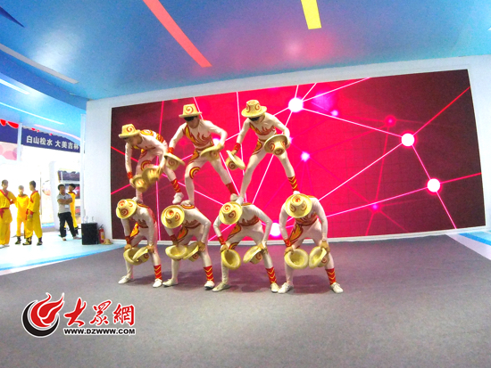 大眾網深圳5月13日訊(特派記者 馬俊驥)歌舞、雜技、時裝走秀、地方曲藝、民族特色手工藝品……大眾網記者在第十二屆深圳文博會看到,參展的全國31個省、區、市及港澳臺地區不僅在展廳布置上費盡心思,而且都拿出渾身解數,通過不同形式展示和推介特色文化。山東團帶來的是由山東曹州武校和省雜技團現場表演的《大圣乾坤》武術表演、草帽雜技和跳繩雜技,高難度的動作和精彩紛呈的表演獲得一陣陣叫好聲。