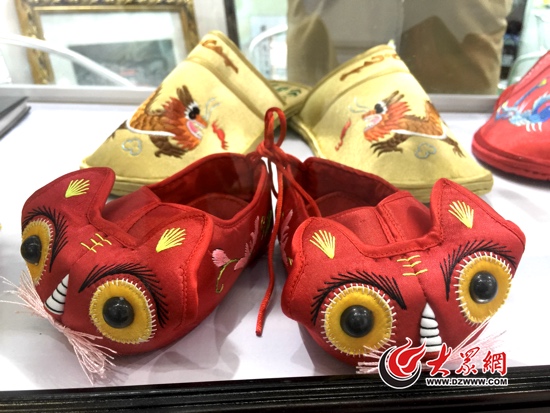 內蒙古團手工藝人展示的刺繡虎頭鞋。記者 馬俊驥 攝