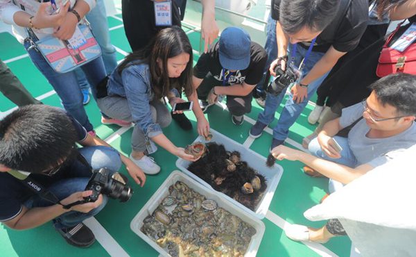 22日上午,采訪團的記者們從西霞口休閑垂釣基地迎著清新的海風乘船出海,在漁民的指導下體驗海上垂釣和捕撈海參的過程。潛水員下水捕撈野生海參的過程中,船上的工作人員用簡單的工具布餌下鉤,每一條魚活蹦亂跳著上鉤,都引來記者們一陣掌聲。