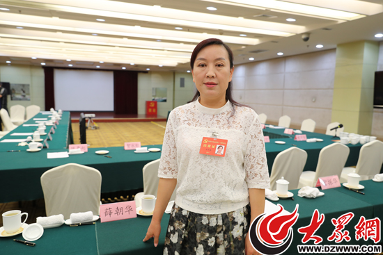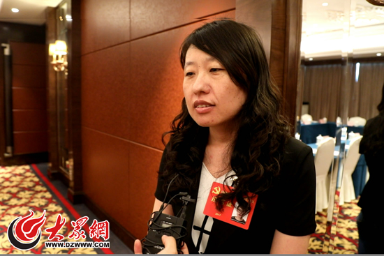 15日上午,濱州團(tuán)代表藺春燕接受記者采訪。