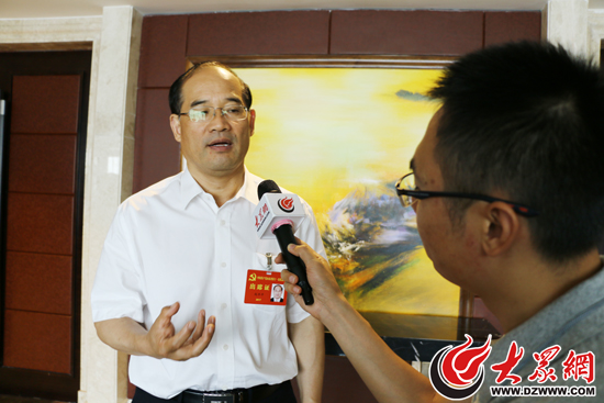 15日上午,濰坊團(tuán)代表、濰坊市教育局局長徐友禮接受記者采訪。