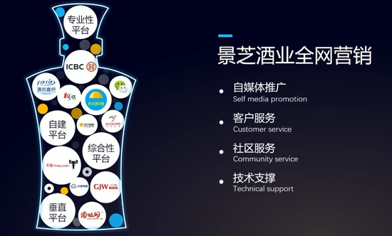 百億征程離不開營銷模式創新,景芝酒業2017年互聯網戰略發布。自2011年成立電子商務部,景芝酒業以互聯網思維推動組織、技術、模式創新,開啟了白酒+互聯網的產業新模式。憑借金融服務、平臺增值服務、技術服務輸出和PB戰略四個版塊,極優佳營銷新平臺規劃在2019年實現整體盈利,并最終實現以品牌商、經銷商、終端店、消費者為核心的極優生態圈和以總部基地、云數據基地、創新孵化基地、智能物流基地為中心的極優產業藍圖。