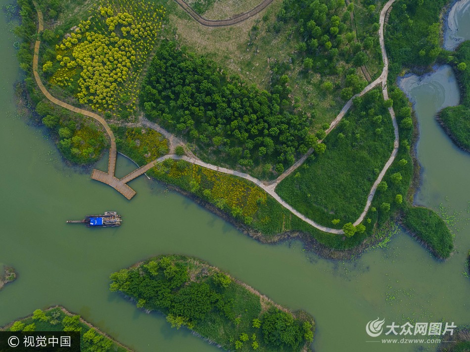 路旁隨處可見充滿野趣的湖泊、河流、小島,沿著陸地和修建的步道,三步五步便可在蘆葦蕩之間發現一片水域。