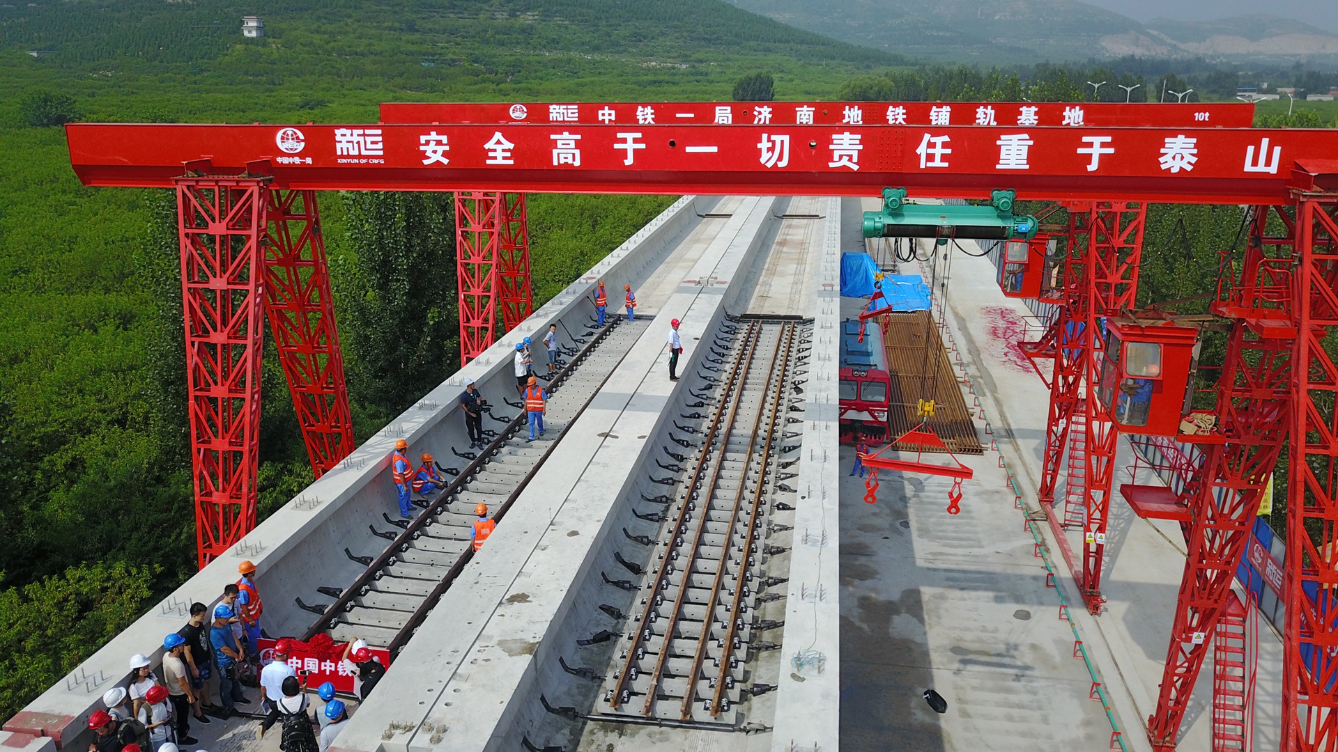 大眾網(wǎng)8月20日訊 8月20日上午,在濟南軌道交通R1線始發(fā)站池東鋪軌基地,隨著濟南軌道交通集團董事長陳思斌的一聲令下,中鐵一局鋪軌工人操作著兩臺龍門架,將一節(jié)25米軌排順利鋪裝到高架橋面線路上,這標志著濟南首條地鐵正式進入鋪軌階段,工程建設重點將由土建施工逐步向機電設備安裝重大工序轉(zhuǎn)換,意味著泉城人民期盼已久的“地鐵夢 ”離現(xiàn)實又近了一步。