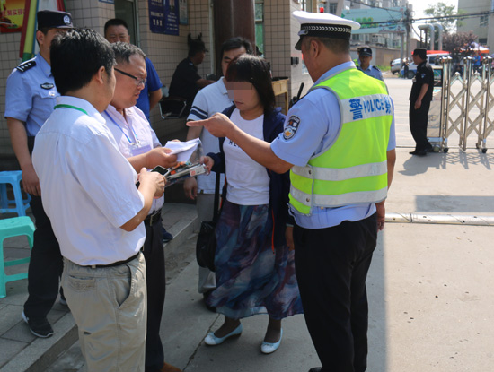 忘帶身份證的考生先進場考試,交警隨后帶著家長取回證件。