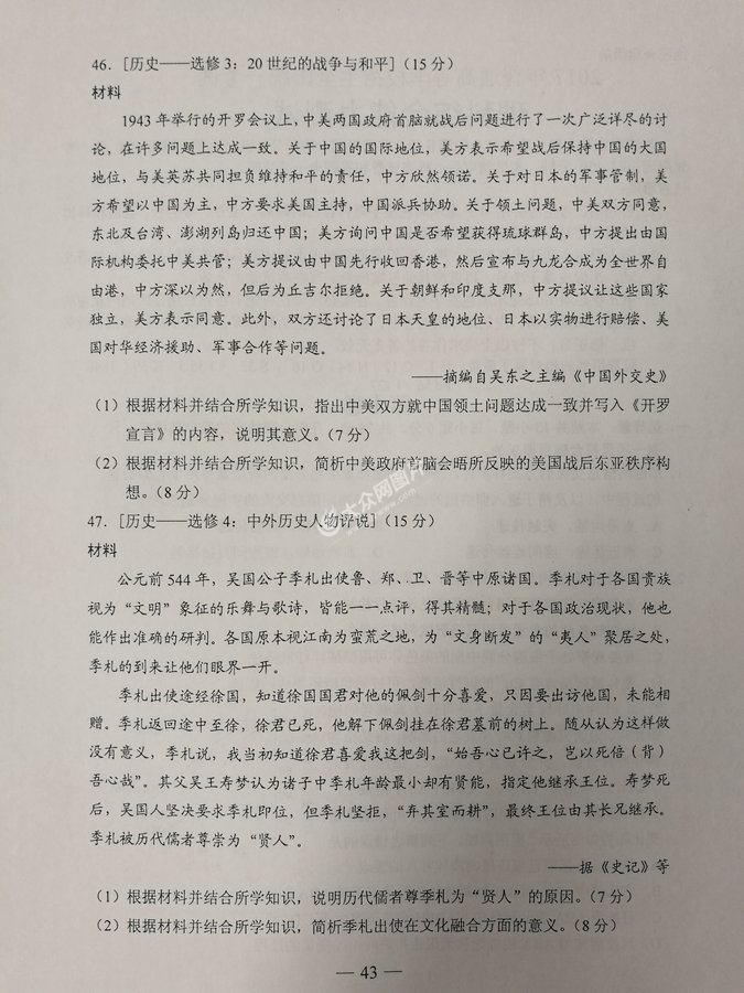 大眾網(wǎng)濟南6月8日訊 6月8日下午,2017年山東高考落下帷幕。當天下午6點,山東省教育廳就今年高考實施情況舉行新聞發(fā)布會,大眾網(wǎng)第一時間對試題及答案予以公布。