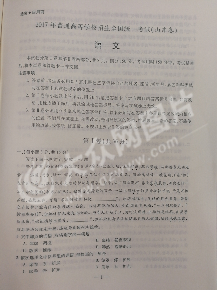 大眾網(wǎng)濟(jì)南6月8日訊 6月8日下午,2017年山東高考落下帷幕。當(dāng)天下午6點(diǎn),山東省教育廳就今年高考實(shí)施情況舉行新聞發(fā)布會(huì),大眾網(wǎng)第一時(shí)間對(duì)試題及答案予以公布。