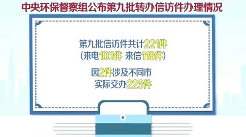 本報濟南9月11日訊 截至今天,中央第三環保督察組轉辦第二十二批信訪件297件(來電100件、來信197件)中,因3件涉及不同市,實際交辦301件,已辦結286件,現予以公開;正在辦理15件,待辦理完畢后,一并向社會公開。 <詳細>