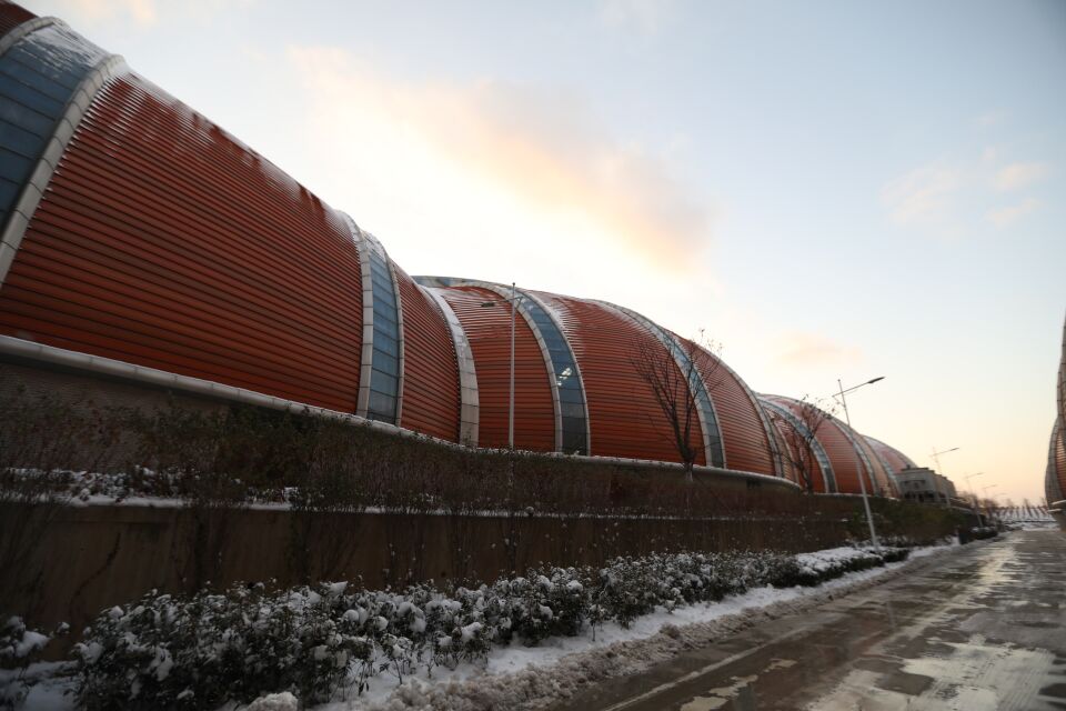走近張裕國際葡萄酒城,遠遠就望見一片橡木桶造型的建筑,這是酒城的工業生產中心,也是全球最大的葡萄酒與白蘭地酒類單體生產廠房,生產中心包括釀造區、儲酒區、調配區、灌裝區、地下酒窖、倉儲物流區六大功能區。