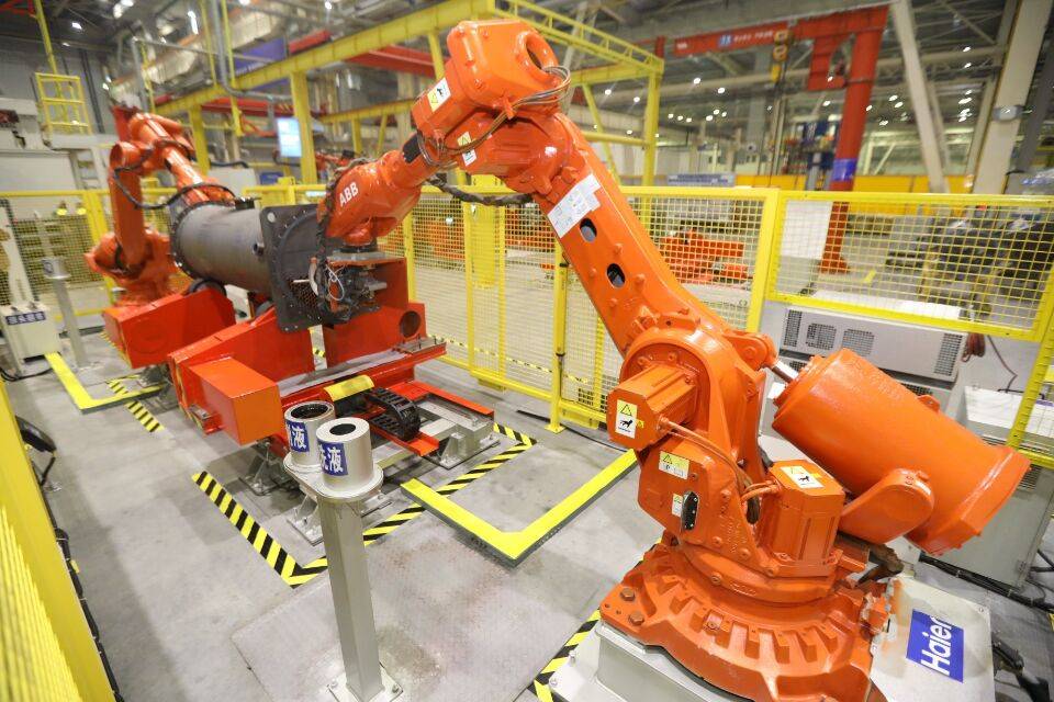 走進海爾中央空調智能互聯工廠,采訪團記者沒有看到工人們忙碌的身影,取而代之的是各種智能化機器。“這里只有100名左右的工人,基本實現了智能化操作!焙栔醒肟照{智能互聯工廠相關負責人介紹,海爾中央空調互聯工廠占地面積8.7萬平方米,具備10類中央空調產品生產能力,配置4個模塊優化區。建成以后,人員實現減半,而產能實現翻番。現在工廠一期年產量由原來的10萬臺增加至28.3萬臺,2018年初二期建成后年產能將擴大到33.8萬臺。