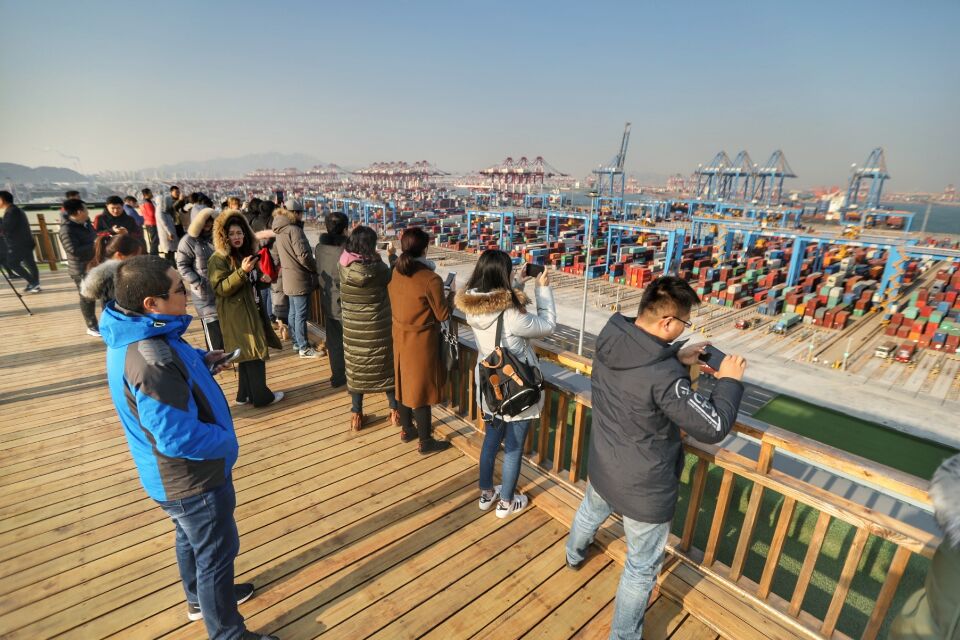 采訪團(tuán)參觀青島港自動化碼頭。