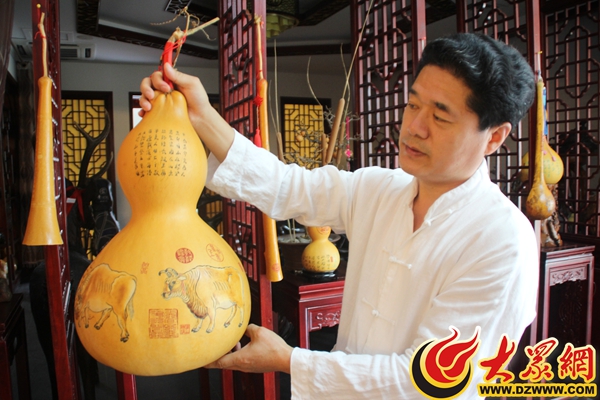 孫希洲說,“雕刻葫蘆是個非常費眼睛的活,一開始學,稍不留神就會劃破手,要求眼、心、手高度專一。”
