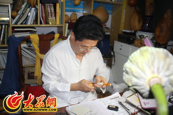 孫希洲在創作葫蘆雕刻