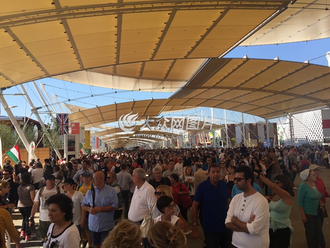 19日,米蘭世博園內游客如潮,人山人海。