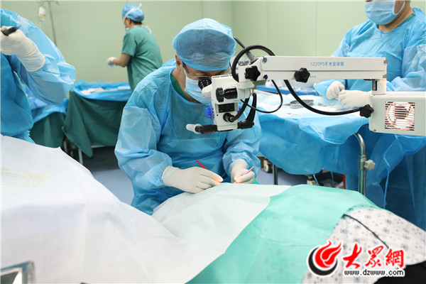 山東大學第二醫院眼科主任張晗正在為白內障患者實施手術