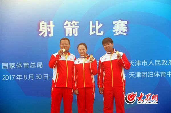 青島小伙王大鵬連奪男子射箭個人、射箭混合團(tuán)體、射箭男子團(tuán)體三塊金牌。
