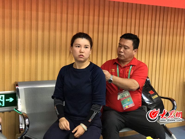 在比賽后,石震拍了拍張夢雪的肩膀,幫她把身后的號碼簿摘下來。他對大眾網記者說,“有些事情不用言語,這只是開始,在后面的比賽里,她會把精彩展現給大家。”