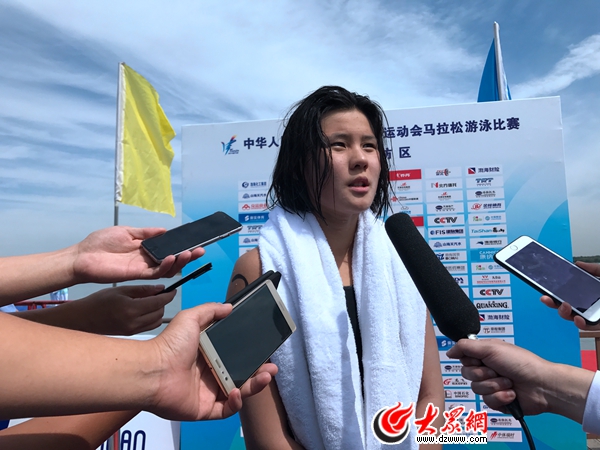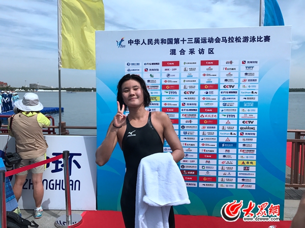 大眾網(wǎng)天津8月29日訊 8月29日,第十三屆全運(yùn)會女子10公里馬拉松游泳決賽在天津武清區(qū)南湖公園舉行,山東隊(duì)派出辛鑫、儲旭、田沐冉出戰(zhàn),最終,山東選手辛鑫奪得冠軍。(大眾網(wǎng)特派記者 王長坤 王宗陽)