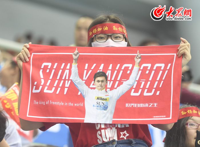 大眾網天津8月31日訊(特派記者 王宗陽 王長坤)在今晚結束的全運會男子400米自由泳決賽中,孫楊以以3分41秒94奪冠。現場,不少孫楊的粉絲“迷妹”來到現場,為孫楊吶喊尖叫。當孫楊身著亮眼的粉紅色泳褲上場時,更是引起“迷妹”們的陣陣尖叫。