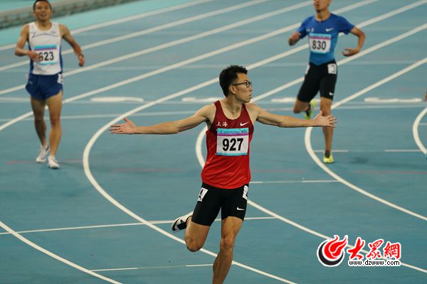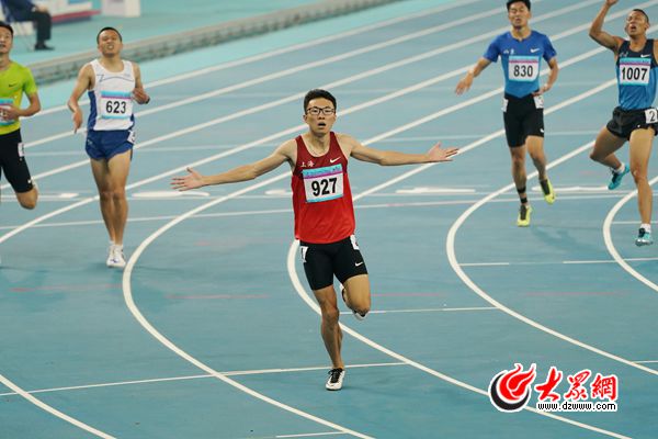 北大學子郭鐘澤以45秒14的成績打破全國紀錄。(大眾網-山東24小時客戶端記者 王長坤)