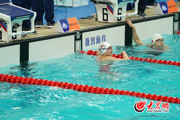 大眾網天津9月1日訊(特派記者 王宗陽 王長坤)她今年只有12歲的,卻參加成人組游泳比賽且不落下風,這個山東“女將”不簡單!在剛剛結束的女子成人組100米跌游泳決賽中,“最小選手”王一淳以58.44秒的成績奪得第四名,只比第一名的河北選手周裔林慢了1.03秒。有媒體稱贊她是年輕版的“女孫楊”,中國游泳有望再度迎來一位超級新星。