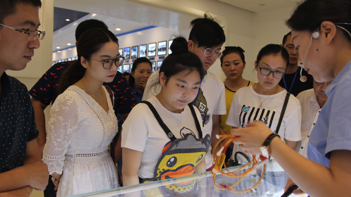 威高集團工作人員為記者介紹高科技產品