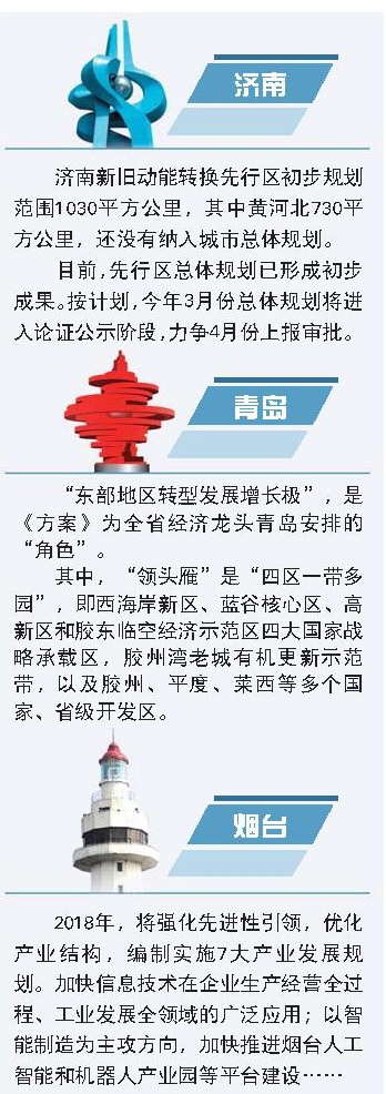 在以濟(jì)南、青島、煙臺(tái)為新舊動(dòng)能轉(zhuǎn)換主引擎的同時(shí),試驗(yàn)區(qū)建設(shè)也給其他14個(gè)市預(yù)留了發(fā)展空間。《方案》明確,將14市的特定區(qū)域作為補(bǔ)充,打造若干經(jīng)濟(jì)增長(zhǎng)點(diǎn),帶動(dòng)區(qū)域協(xié)同發(fā)展。