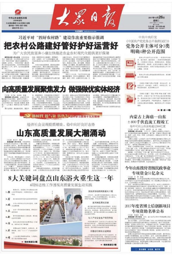 日前結(jié)束的中央經(jīng)濟工作會作出一個重大判斷:經(jīng)濟發(fā)展進入新時代,基本特征就是我國經(jīng)濟已由高速增長階段轉(zhuǎn)向高質(zhì)量發(fā)展階段。地處東部沿海地區(qū)、處在由大到強戰(zhàn)略性轉(zhuǎn)變關(guān)鍵時期的山東,深切感受到了走高質(zhì)量發(fā)展道路的緊迫性和必要性。