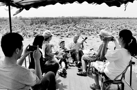 “西邊的太陽快要落山了, 微山湖上靜悄悄。彈起我心愛的土琵琶, 唱起那動(dòng)人的歌謠……”9月17日,微山縣微山島鎮(zhèn)西張阿村荷園里,又響起《彈起我心愛的土琵琶》這熟悉的歌聲,唱歌的是西張阿村貧困戶劉德華,一曲終了,游客掌聲響起。