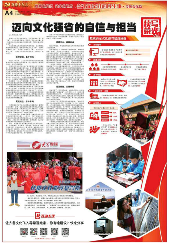 為貫徹落實習近平總書記視察山東重要講話、重要指示批示精神,省委、省政府把傳承發展優秀傳統文化擺上全局工作突出位置,從更高站位上深化思想認識,從更寬視野上強化總體布局,從更廣領域上迅速付諸行動,加強組織領導,認真組織策劃,持續用力推動。