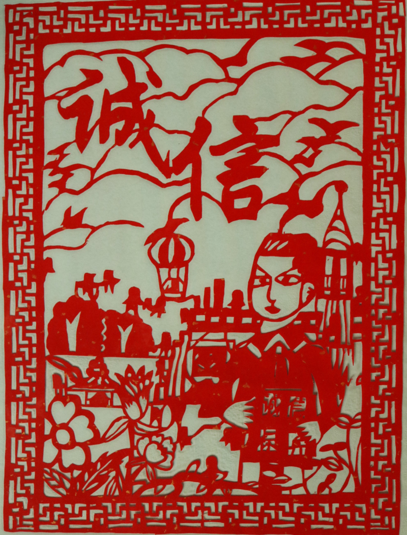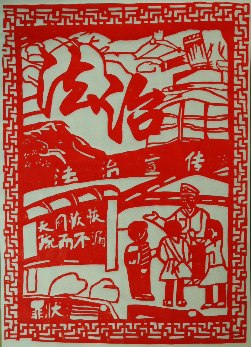 我們所創(chuàng)作的作品,是想體現(xiàn)新中國的主題,現(xiàn)在的新中國就是一個文明、和諧、誠信、法治的國家,而我們的作品就是將這幾個方面加上一些社會現(xiàn)象融入到剪紙作品中,用中國的傳統(tǒng)文化來展現(xiàn)新中國的風(fēng)采,讓人們跟直觀的感受到新中國的改變,同時,也可以弘揚(yáng)中國傳統(tǒng)文化。