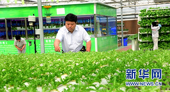 王傳喜在溫室中察看蔬菜長(zhǎng)勢(shì)