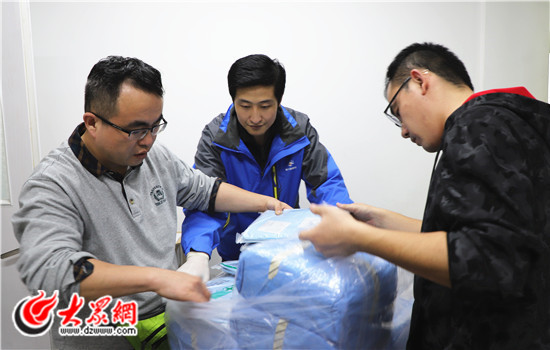 山大二院眼科專家王磊、魏超、王合雷正在清點物品拆裝調試設備