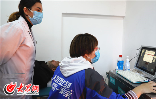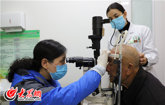 作為志愿者,棗莊市中區人民醫院眼科主任湯靜正在為患者檢查