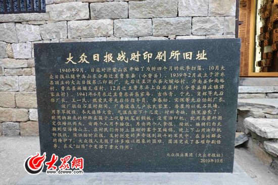大眾網(wǎng)臨沂12月3日訊 在山清水秀的天蒙山上,有兩間修葺一新的石頭茅草屋,上面赫然寫著“大眾日報”四個大字,這就是大眾日報戰(zhàn)時印刷所舊址所在。在印刷所前,有一座石碑,上面記錄了那段戰(zhàn)火紛飛的光榮歷史。作為這座石碑內(nèi)容書寫的參與者,費縣縣委黨史研究室原主任張乃軍向記者講述了他了解的大眾報人的拼搏和奉獻精神。