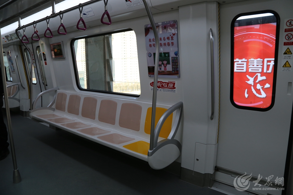 泉城地鐵車身米白色,內設黃色愛心專座
