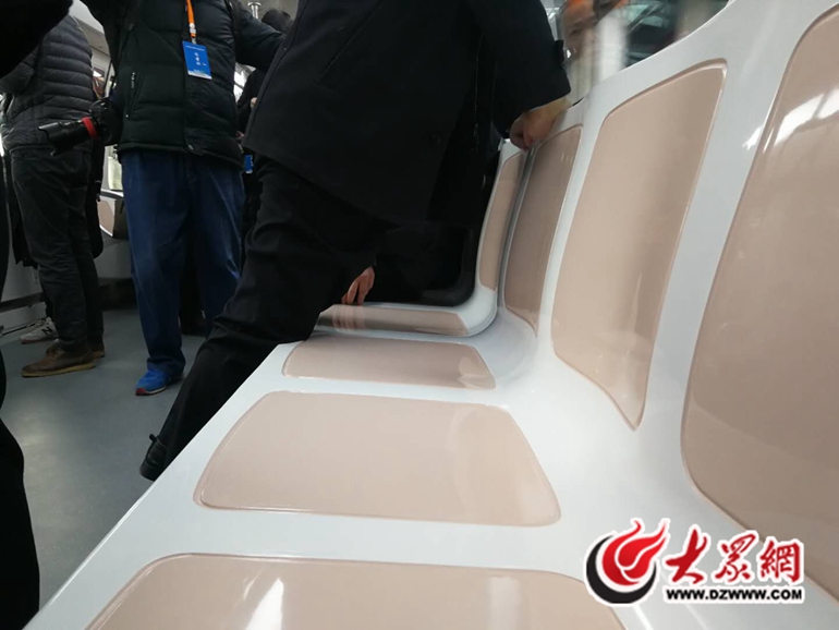 據介紹,國內同行業的都是430毫米,而濟南軌道交通一號線是450毫米,坐起來比較寬敞一些,另外一個就是當我們適合人體,像下面側面都是弧形的,這樣的話,車啟動的時候,乘客不至于滑走!