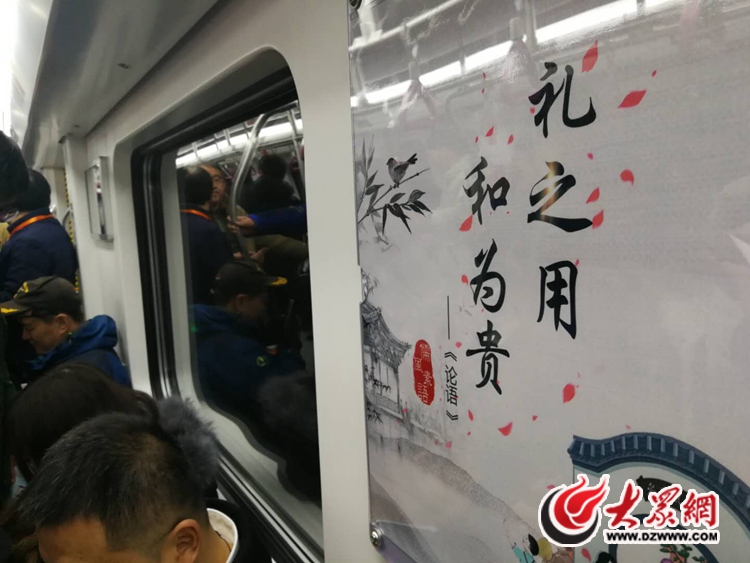 大眾網-海報新聞濟南1月1日訊(記者 孫杰 賀輝)今天上午10時許,濟南史上首趟地鐵列車正式從創新谷站駛出。記者從車廂里看到,傳統文化元素隨處可見,每節車廂里都掛有精選的《論語》。