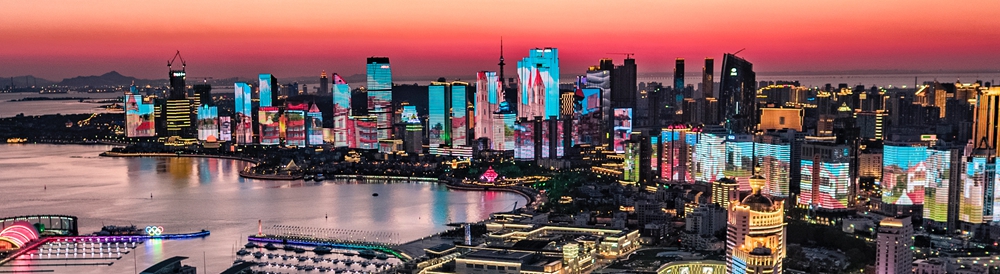 《青島浮山灣燈光秀》2018年6月,上合峰會在青島舉行,以浮山灣“樓宇燈光秀”為代表的青島美景成為“網(wǎng)紅”。
