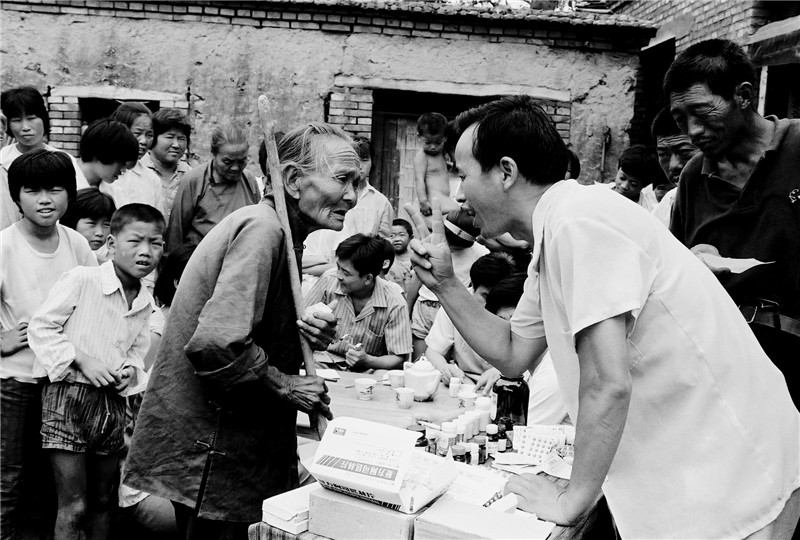 為解災民燃眉之急,防止疫情發生,省地縣組織131個醫療隊,涉水趟泥深入重災村戶防病治病,把黨的溫暖送到人民群眾心坎,巨野縣鄉王橋村民接受了省醫療隊治療。(央廣網發 王超英 攝)