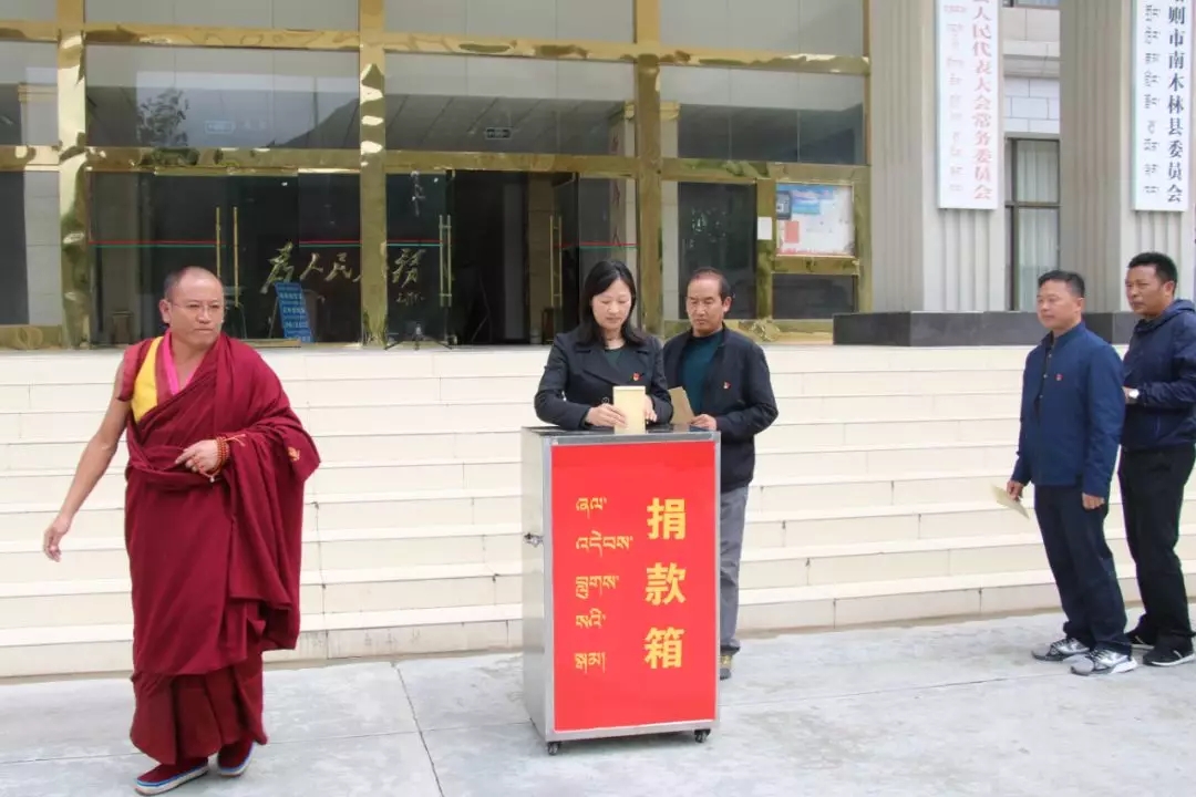 天災無情人有情,大災面前有大愛,兩地同胞同根同源,血脈相連,災情不僅牽動著黨中央國務院的心,同時也牽動著全國各族人民的心,更是牽動著南木林縣八萬余名藏族同胞的心。在以習近平新時代中國特色社會主義思想為指導下,在“四講四愛”群眾教育實踐活動引導下,南木林縣各界不忘初心、牢記使命,牢固樹立“五個認同”意識,在聽到災情消息后,南木林縣委、縣政府第一時間安排部署,提出倡議,呼吁全縣各族人民伸出援手,共同與災區群眾同舟共濟渡難關,為受災群眾獻上溫情和愛心。8月25日上午在日喀則市委副書記,政府常務副市長姜國杰和縣主要領導的帶領下,組織全縣縣直機關全體干部職工、企事業人士、農牧民群眾進行南木林縣向濰坊市受災群眾捐款活動,同一時間,縣轄區各鄉鎮、學校、寺廟也相繼進行。