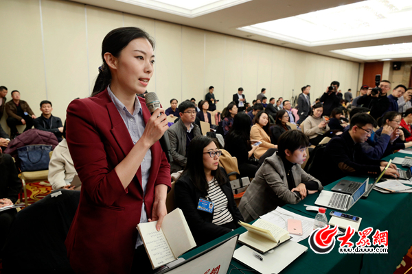 山東團開放日,大眾網記者姜洋在提問。