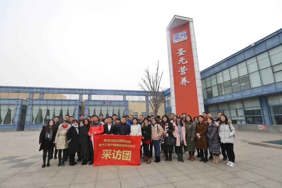 第十三屆中國(guó)網(wǎng)絡(luò)媒體山東行采訪團(tuán)在圣元營(yíng)養(yǎng)食品有限公司合影留念。