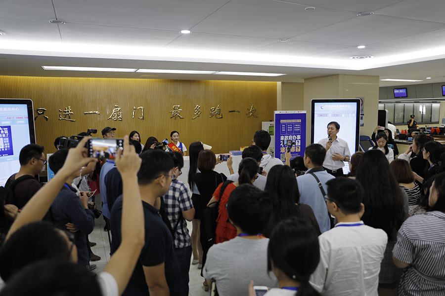 9月10日,第十四屆中國網絡媒體山東行走進濟南政務服務中心。
