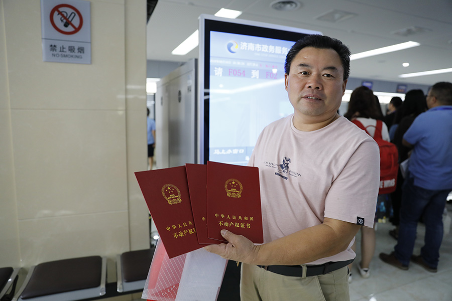 市民向記者展示剛辦好的不動產權證書