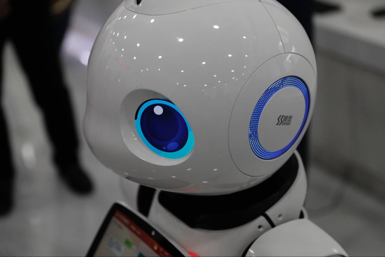 外形科幻靚麗的神思電子智能行業服務機器人。
