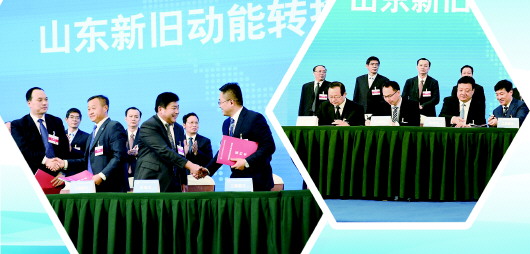 全國工商聯主席高端峰會上舉行了山東新舊動能轉換重點項目簽約儀式。 □記者 李勇 報道
