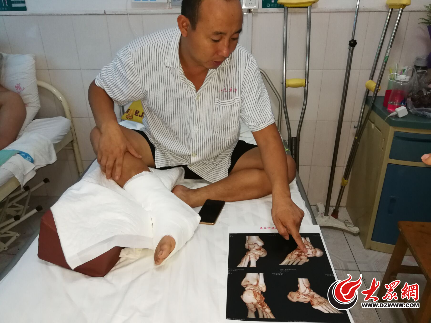 張春海向記者展示摔傷時的片子,可以清楚看到他的后腳跟已經(jīng)完全脫節(jié)。
